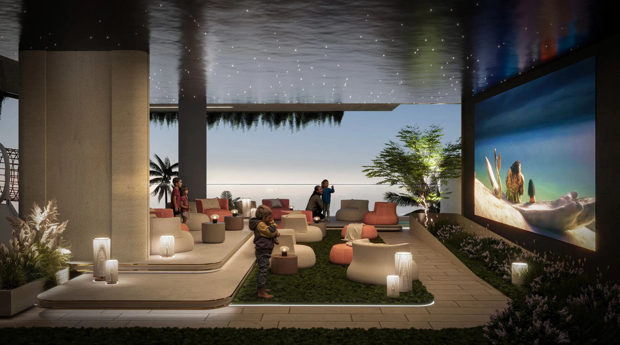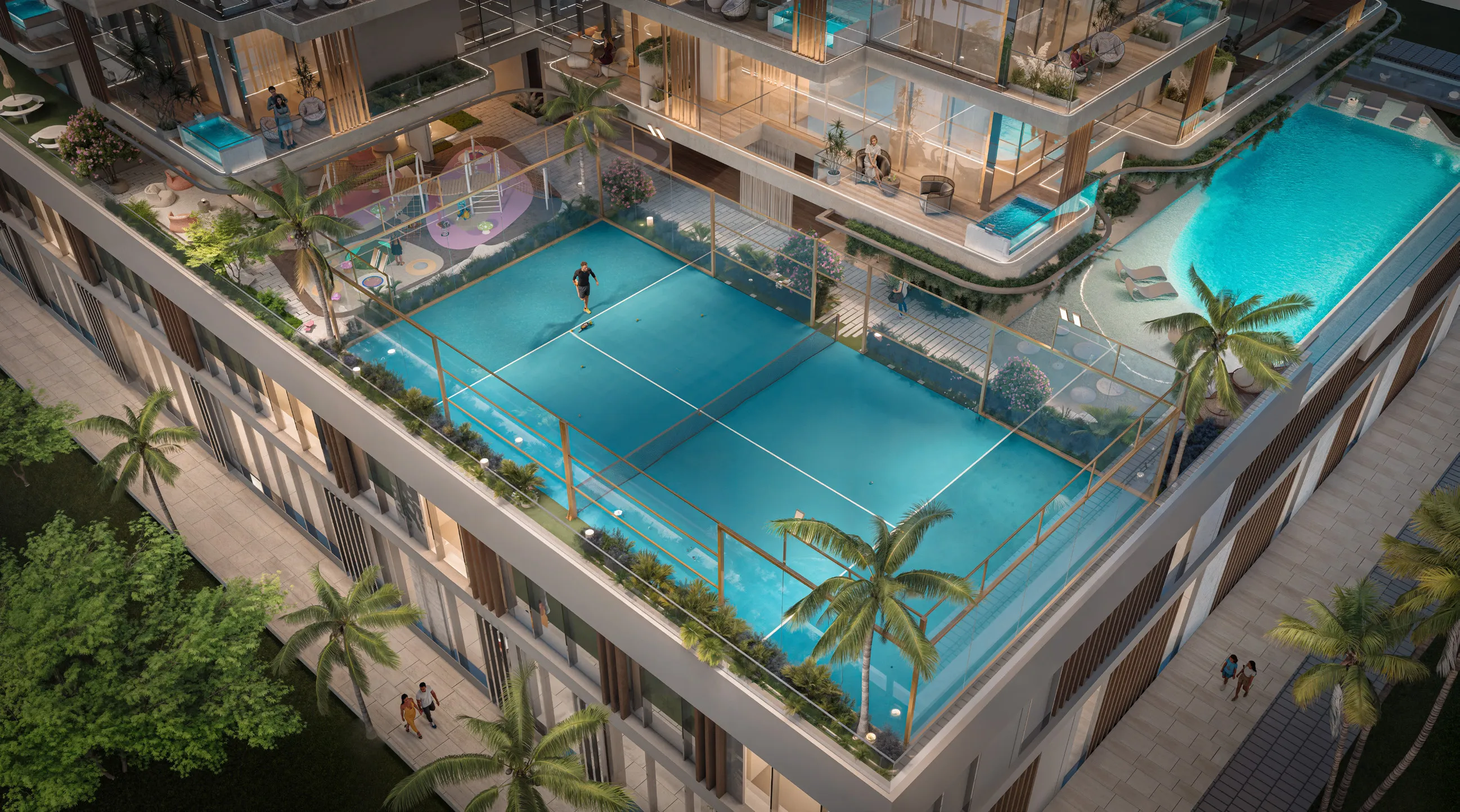 The project offers a variety of luxurious amenities for its residents. Here, you’ll find unique beach-edge pools, an infinity pool on the rooftop with panoramic views, an open-air cinema, a private fitness center, and a wellness area for rejuvenation. All communal spaces are thoughtfully designed to create an atmosphere of tranquility and comfort, where every moment of life is filled with relaxation and joy.