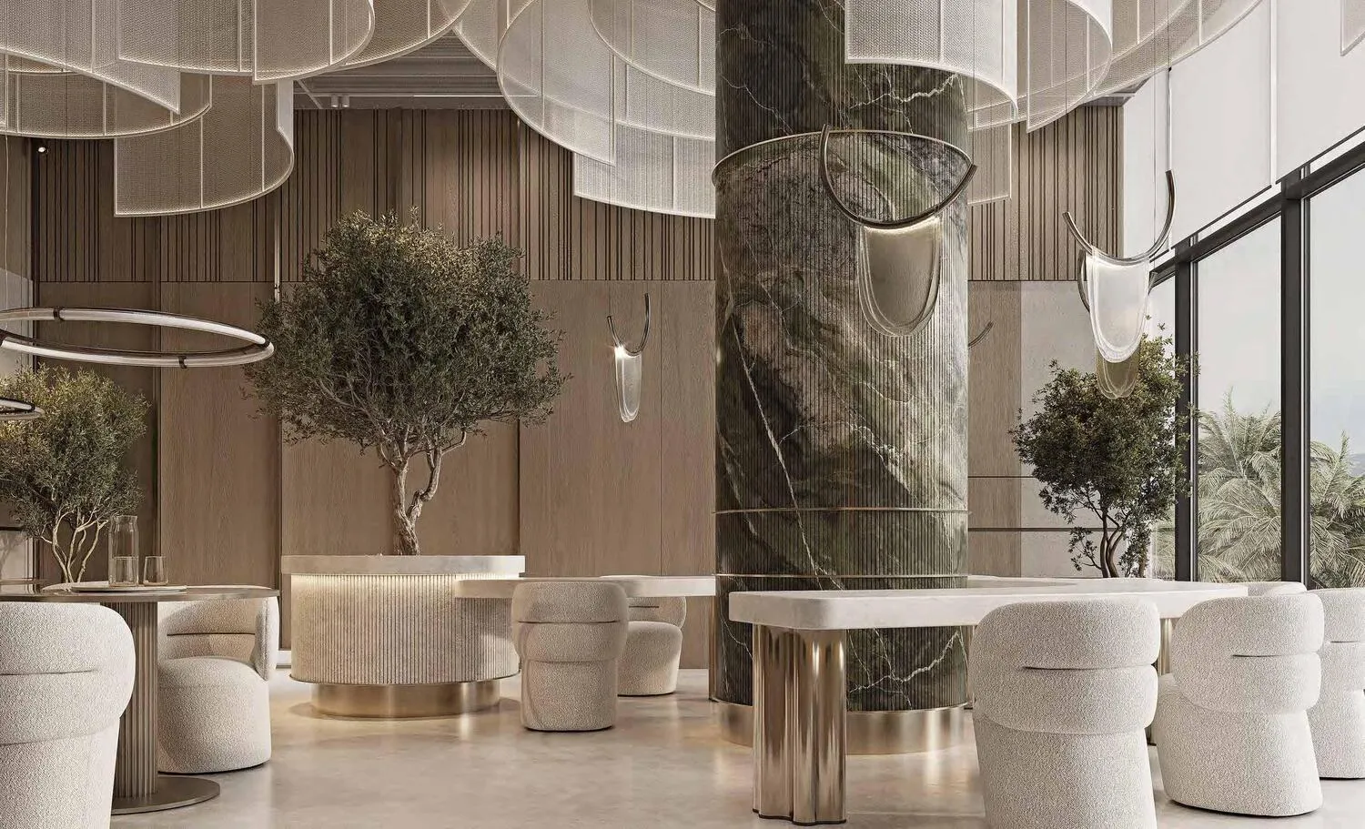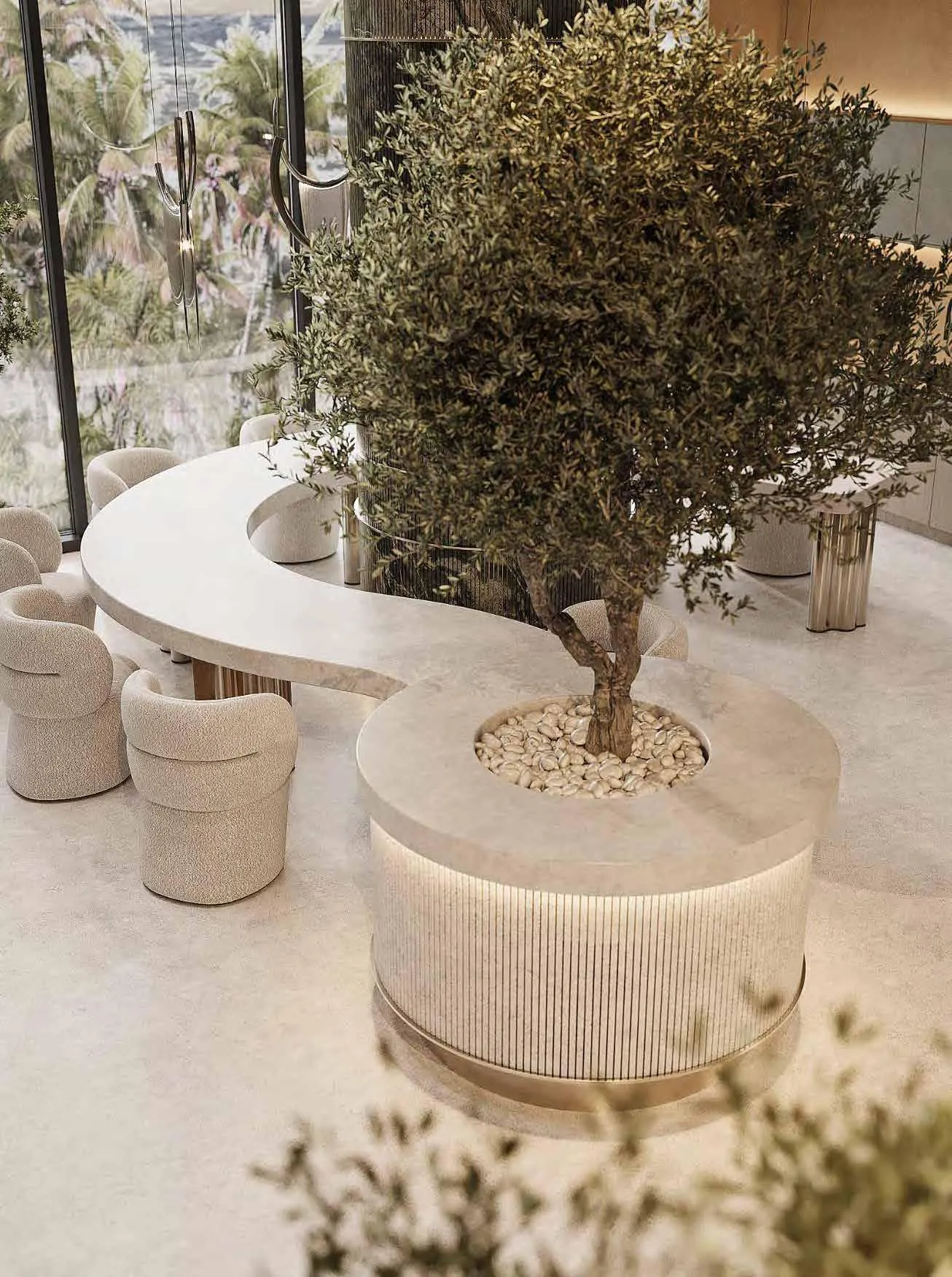 Inside, residents experience a refined sanctuary crafted around the principles of integrative wellness. Every apartment is fully furnished and serviced, featuring spacious balconies, biophilic interiors, and a calm palette of natural materials. The thoughtful design enhances well-being while offering flexibility for both permanent residents and those seeking a retreat from the pace of modern life. With interiors curated by world-renowned design studios such as 1508 London, TRUSH Design, and Design Nomad, Amra represents a global collaboration of craftsmanship and innovation.
