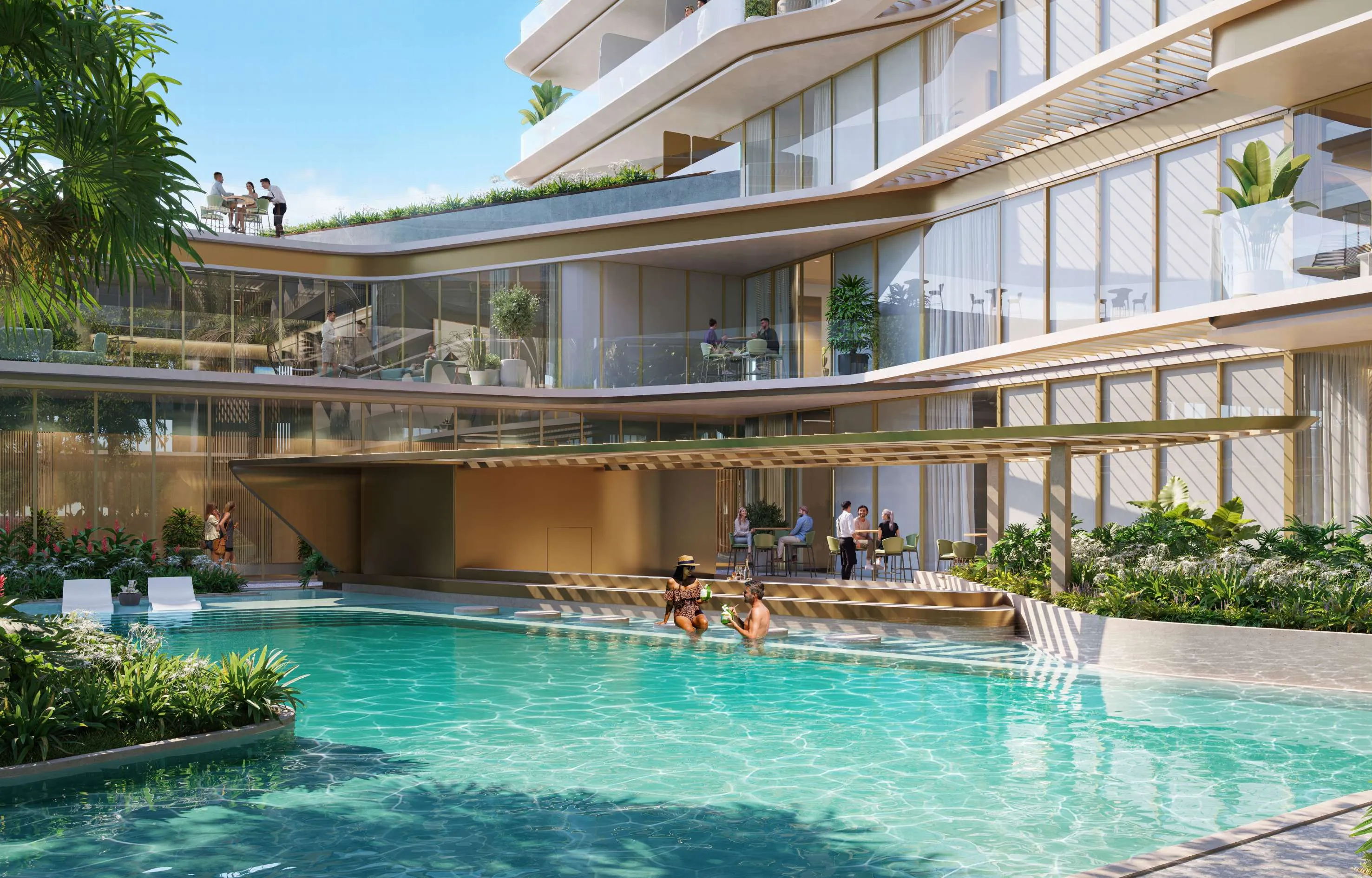 The lifestyle at Palazzo Tissoli extends far beyond the home. Residents enjoy a world-class collection of amenities — from multiple swimming pools and wellness spaces to rooftop lounges, restaurants, and gardens. A private cinema, cigar lounge, co-working studio, yoga loft, and lagoon-style pools define a “Center of Life”, where wellness, design, and community converge in perfect harmony on Ras Al Khaimah’s most dynamic waterfront.