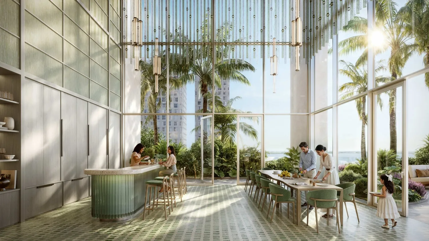 Residences are finished in a contemporary style with refined, high-quality materials and an emphasis on light, texture, and proportion. Interiors feature floor-to-ceiling glazing, elegant surfaces, and carefully selected finishes that reflect a calm, coastal palette. Kitchens are fully fitted with integrated cabinetry, stone countertops, and built-in appliances. The project is delivered unfurnished, allowing residents to personalize their living spaces while benefiting from premium base specifications throughout.