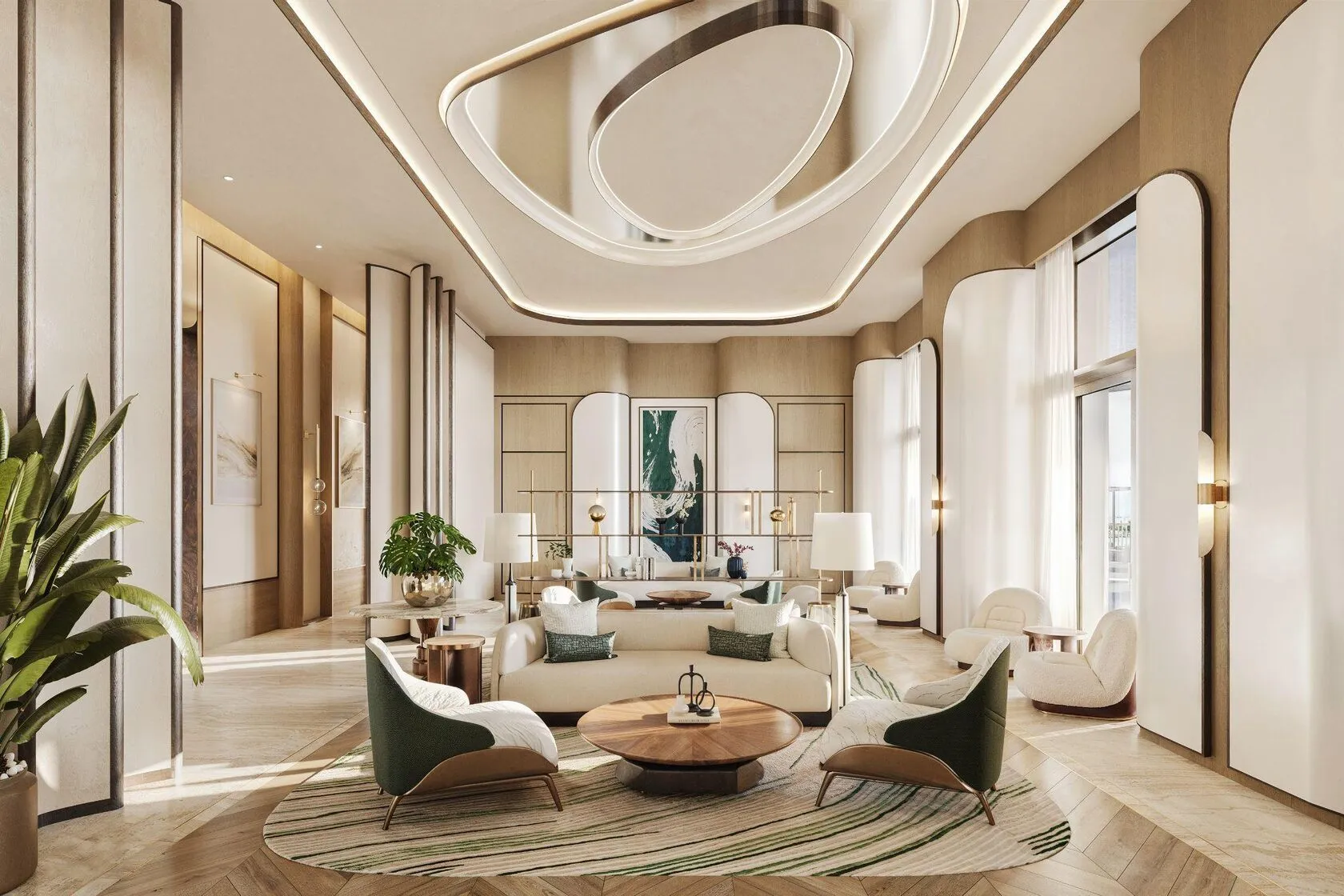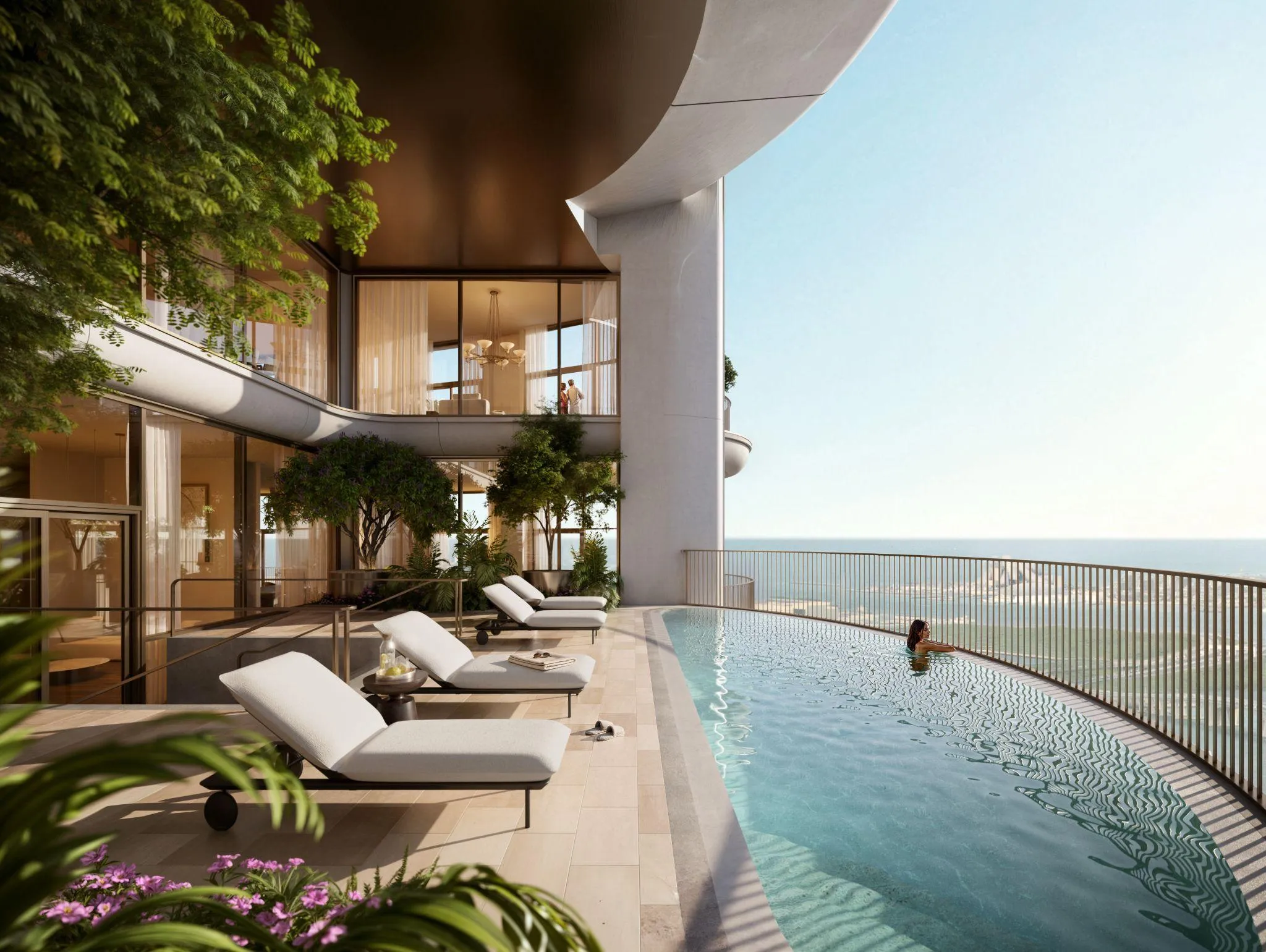 Residents enjoy an extensive collection of carefully curated amenities designed to enrich daily life. These include an infinity horizon pool, indoor and outdoor pools, a sanctuary spa with sauna, steam and cold plunge, elite fitness club, yoga and Pilates studios, a prestige cinema and media lounge, executive golf simulator lounge, squash court, signature residents' club, co-working lounges, treatment rooms, luxury retail boulevard, enchanted kids’ wonderland, cafés, community kitchen, library, and beautifully appointed guest suites. Thoughtful spaces such as the verdant staircase atrium and grand lobby arrival further enhance the sense of calm sophistication that defines the community.