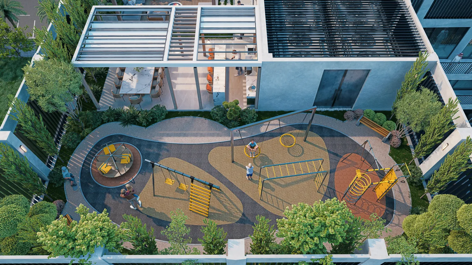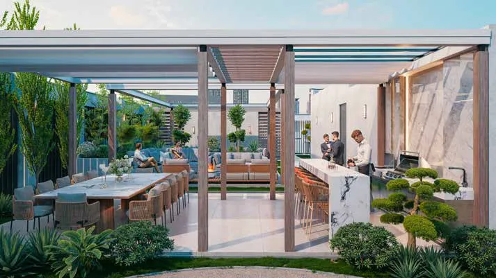 Amenities at The Collective create a complete wellness-oriented environment, featuring the Azure Infinity Pool, the energetic Pulse Lifestyle Hub, the social rooftop Gather zone, and the active Motion Wellness & Play area. Complemented by a gym, wellness studio, landscaped terraces, community gardens, children’s play areas, a rooftop bar, open-air cinema, multi-purpose court, relaxation spaces, and a concierge-serviced lobby, the development is elevated by interiors finished with high-quality materials and fully furnished residences curated by Bold Bespoke Design, including refined kitchens, contemporary bathrooms, and tailored storage solutions.
