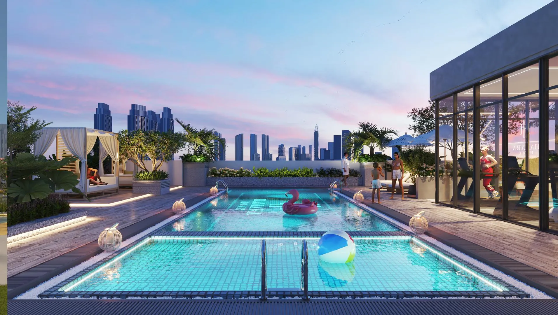 Residents of Almaara Residences enjoy a range of lifestyle amenities designed to enhance daily comfort and social interaction. These include a swimming pool with a dedicated kids’ pool, a fully equipped fitness gym, children’s play areas, BBQ spaces, and open-air lounge zones. Kitchens are delivered semi-equipped, while interiors are finished with high-quality materials and contemporary detailing, offering a refined yet practical living environment within one of Dubai’s most well-connected residential communities.