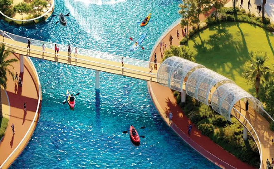 Residents benefit from an extensive selection of lifestyle amenities, thoughtfully distributed throughout the community. Over 25+ facilities include multiple infinity pools, gyms, saunas, kids’ pools and play areas, yoga studios, jogging and cycling tracks, sports courts, a multi-purpose dome, outdoor cinema, lagoon dining, boat docks, scenic promenades, lush parks, barbecue zones, recreational halls, juice bars, and quiet green retreats. Essential community services such as nurseries, healthcare centers, libraries, police points, retail avenues, and cafés create a complete ecosystem where relaxation, recreation, and everyday convenience come together.