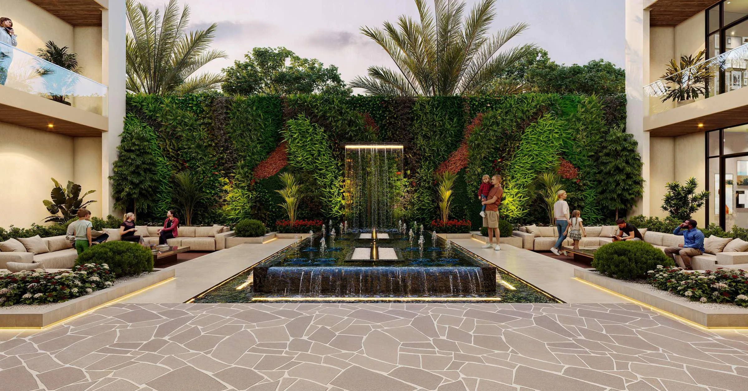 The residential offering includes studios and one-, two-, and three-bedroom apartments designed with spacious layouts and refined detailing. Interiors are finished in a modern style using porcelain floor tiles with a marble look, matching porcelain skirting, plastered walls with emulsion paint, accent walls with wallpaper or equivalent finishes, and gypsum ceilings. Wardrobes and kitchen cabinetry are crafted from MDF joinery with laminate finishes, while kitchens feature engineered stone or quartz countertops and come equipped with German-quality appliances, including oven, cooker or hob, hood, fridge, and washing machine from Siemens, Bosch, or equivalent brands. Bathrooms are fitted with premium sanitaryware from Kohler, Duravit, or equivalent, completing homes defined by quality, durability, and timeless elegance.